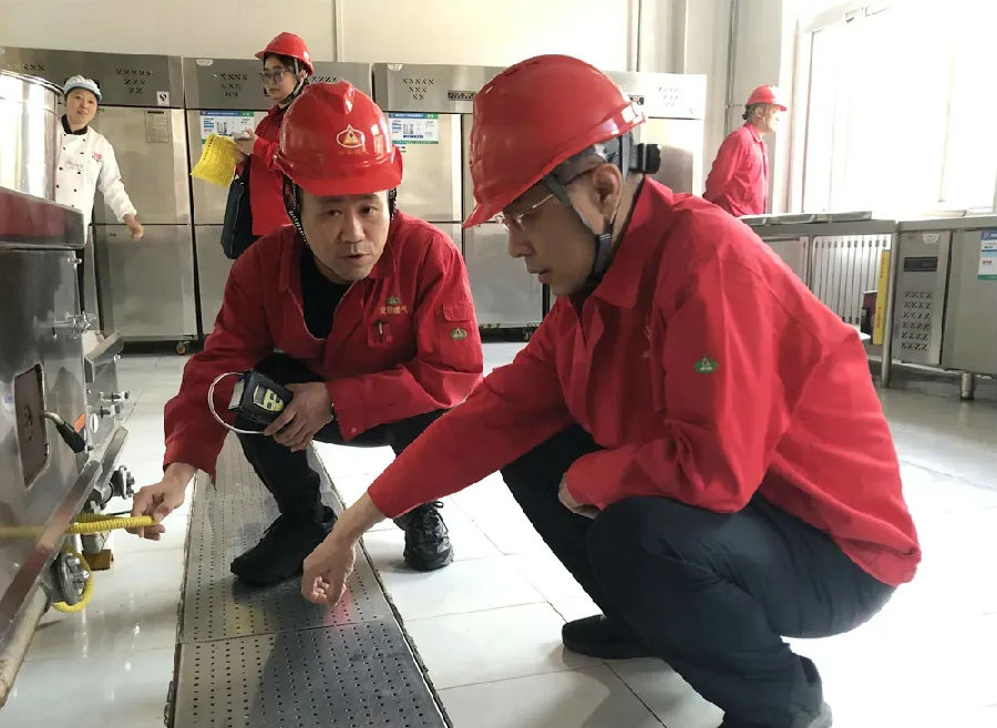 本次檢查由公司領(lǐng)導(dǎo)班子成員分組帶隊(duì),重點(diǎn)圍繞場(chǎng)站運(yùn)行、管網(wǎng)巡檢、施工監(jiān)護(hù)、居民用氣及辦公區(qū)域安全等關(guān)鍵環(huán)節(jié)開(kāi)展全覆蓋專項(xiàng)安全檢查,并將人員密集的公服用戶作為此次檢查的重中之重。在愛(ài)琴海購(gòu)物公園檢查時(shí),檢查組不僅檢查了燃?xì)夤艿?、灶具等設(shè)施的使用狀況,還對(duì)相關(guān)工作人員進(jìn)行了安全用氣知識(shí)培訓(xùn),指導(dǎo)他們?nèi)绾握_使用燃?xì)庠O(shè)備、如何在緊急情況下進(jìn)行應(yīng)急處置。同時(shí),工作人員還提醒公服用戶在五一假期人員流量增大的情況下,更要關(guān)注燃?xì)庠O(shè)施運(yùn)行狀態(tài),保障用氣安全。